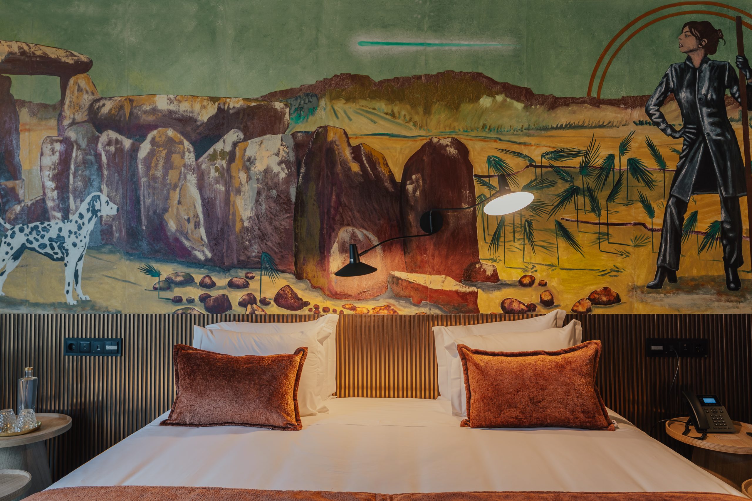 Com o objetivo de promover a arte local e proporcionar uma experiência única aos seus hóspedes, convidámos vários artistas da região de Leiria a decorar dez dos nossos 27 quartos. Esta colaboração pretende não só dotar o Leiriartem Hotel de um ambiente mais distintivo e criativo, mas também celebrar e divulgar o talento dos artistas leirienses, transformando os quartos em verdadeiras galerias de arte contemporânea, onde cada detalhe reflete a criatividade e a identidade cultural dos artistas e da região. Conheça o quarto Signature by Serra, intitulado "Contágio Inconsciente".
